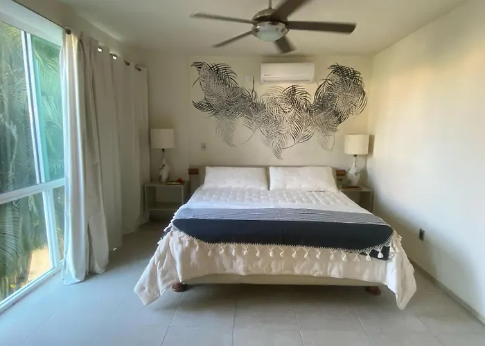 The villa is set in a beachfront location in Nuevo Vallarta, a 15-minute drive from Lic. Gustavo Diaz Ordaz airport. The sushi bar Yashinoki Sushi Bar is located 400 metres away. You can get to Bucerias in a few minutes by car.